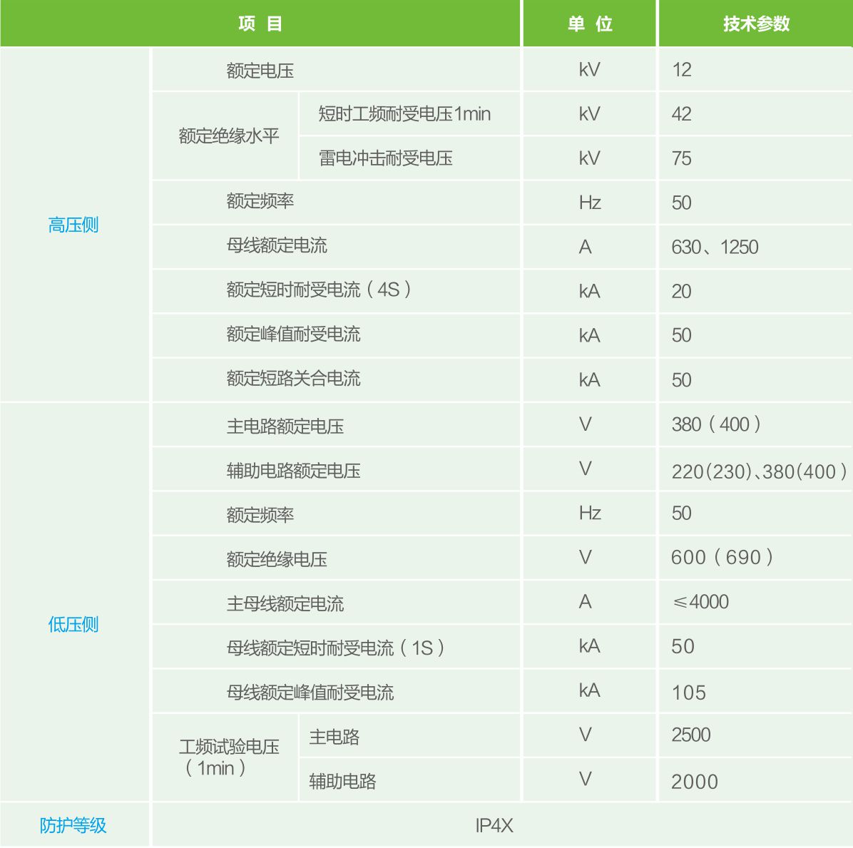·變壓器室設有獨創的通風道,可加速空氣對外擴散,自然條件下整體柜內溫度不超標,箱體外殼溫升級別最高可達5K 。